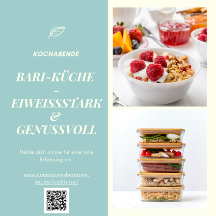 Sie möchten in privater Runde gerne einen Kochabend mit verschiedenen Ernährungsinfos erleben und bekommen mindestens 4 Personen zusammen? Dann melden Sie sich gerne bei mir!
